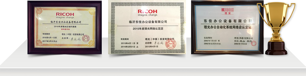 臨沂東佳辦公設(shè)備有限公司成立于1999年,是一家專賣臨沂理光打印機(jī),臨沂復(fù)印打印一體機(jī)等理光辦公設(shè)備及專業(yè)維修服務(wù)于一體的臨沂復(fù)印機(jī)租賃服務(wù)性公司,在多年來(lái)的努力拼搏下,公司發(fā)展的發(fā)展突飛猛進(jìn),自2002年至今連續(xù)十九年的理光辦公設(shè)備代理商,先后獲得了理光(我國(guó))授權(quán)臨沂總代理,理光數(shù)碼復(fù)印機(jī),一體機(jī)臨沂總代理,理光辦公設(shè)備網(wǎng)絡(luò)認(rèn)證店,理光辦公設(shè)備維修認(rèn)定店等產(chǎn)品代理資質(zhì)及維修資質(zhì)。并配備了大量理光數(shù)碼辦公設(shè)備原裝零配件及其系列的純正耗材。